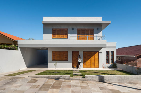 Residência contemporânea localizada na cidade de Carlos Barbosa, a qual tira partido da estrutura para concepção das fachadas, através da viga aparente entre pavimentos. Os clientes já possuíam as esquadrias, as quais foram todas reaproveitadas no projeto.